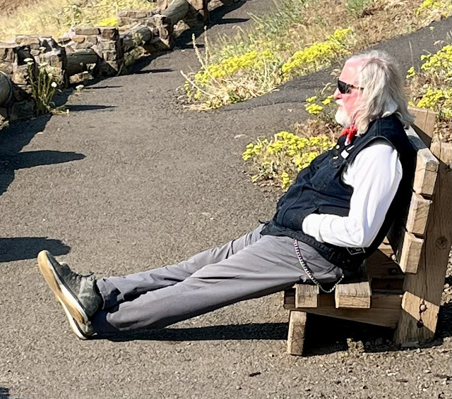 Grim tried his "cool vest" for the first time and is a convert. Again, traffic was light and we passed quickly through Weiser and then on to Payette. It was hot but smooth running over the countryside from Payette on old Highway 30/Sand Hollow. We sped on into the valley and ended up where we began the previous day. Heartfelt hugs and well wished were exchanged and all headed their separate ways. It was about 2:30 pm when we split up.